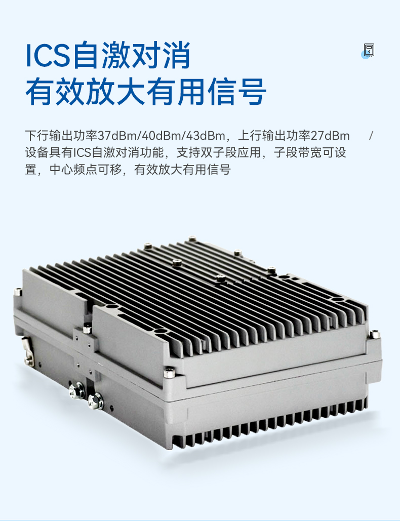 ? 設備具有ICS自激對消功能,支持雙子段應用,子段帶寬可設置,中心頻點可移,有效放大有用信號。
