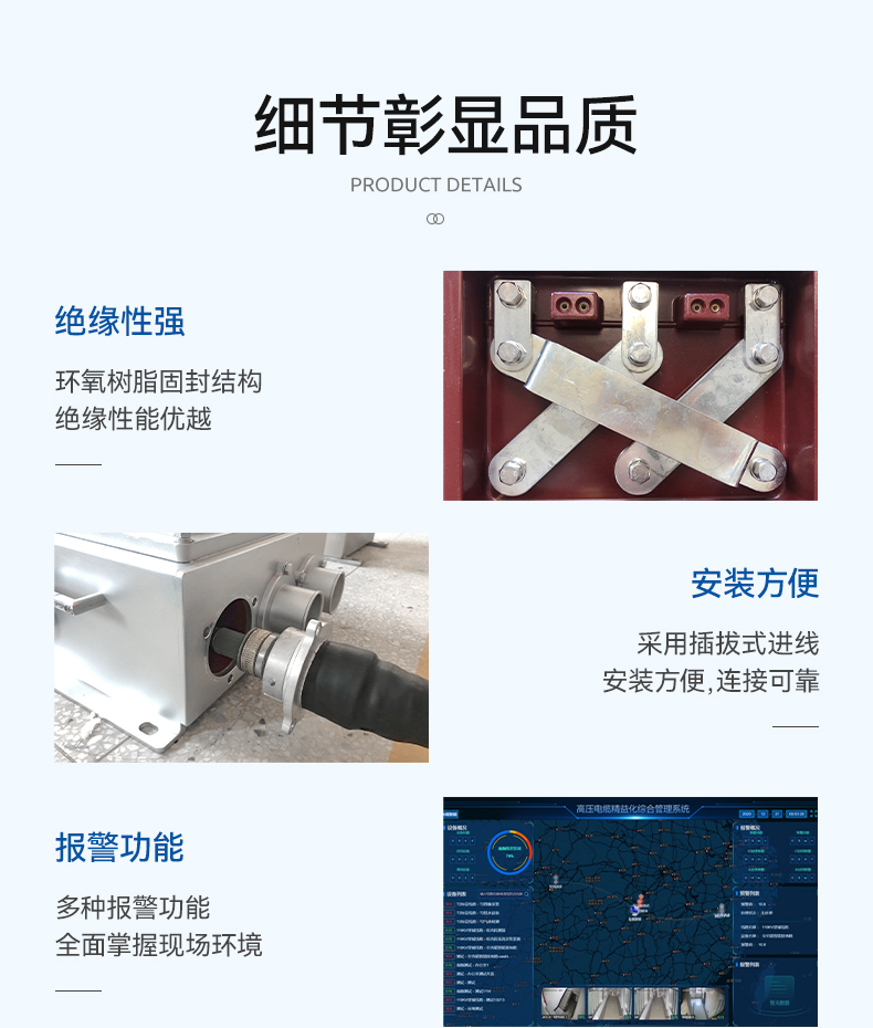 ?小巧精致,信號采集箱(傳統(tǒng)接地組件)、信號處理箱、取電組件分離,安裝靈活性大,適合安裝于電纜夾層、橋架、接頭井等場合。