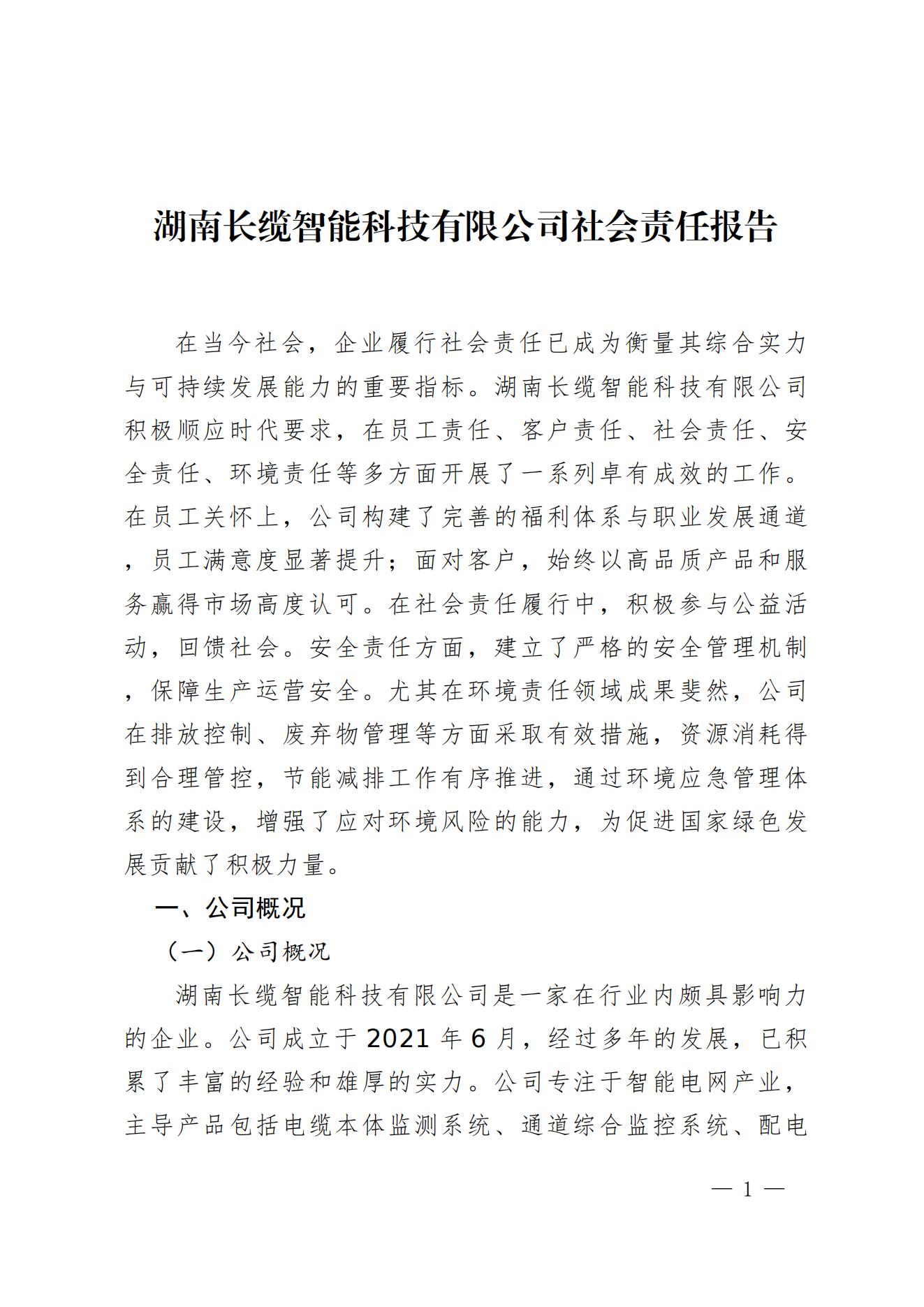 湖南長纜智能科技有限公司社會責(zé)任報告信息公示