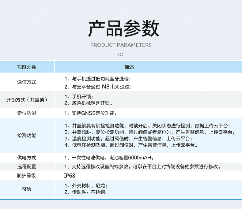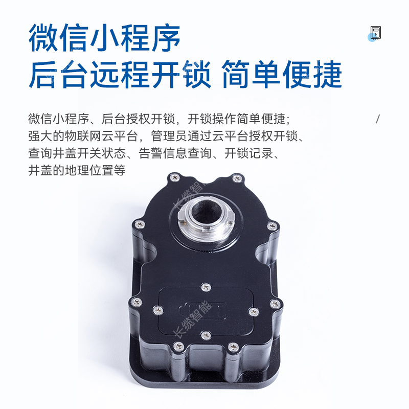 2. 強(qiáng)大的物聯(lián)網(wǎng)云平臺(tái),管理員通過(guò)云平臺(tái)授權(quán)開(kāi)鎖、查詢(xún)井蓋開(kāi)關(guān)狀態(tài)、告警信息查詢(xún)、開(kāi)鎖記錄、井蓋的地理位置等;