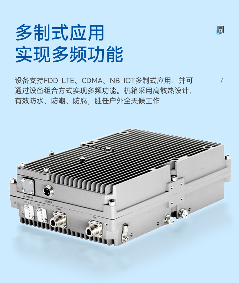 ? 設備支持FDD-LTE、CDMA、NB-IOT多制式應用,并可通過設備組合方式實現(xiàn)多頻功能。