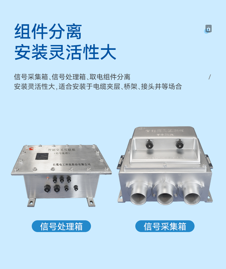 ?小巧精致,信號采集箱(傳統(tǒng)接地組件)、信號處理箱、取電組件分離,安裝靈活性大,適合安裝于電纜夾層、橋架、接頭井等場合。